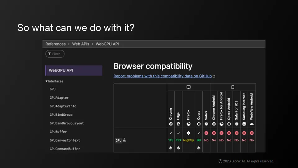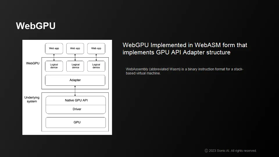 Web GPUs display (relatively) high-level API Apapter implementations built on top of web assemblies for high performance